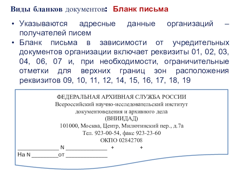 кроме письма, в зависимости от учредительных документов организации включает реквизиты 01, 02, 03, 05, 06, 08, 12, ограничительные отметки для границ зон расположения реквизитов 09, 10, 11, 12, 17, 18
