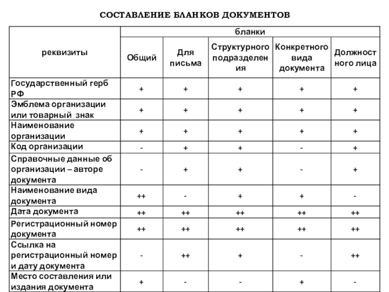 Число реквизитов, характеризующих документы, определяется целями создания документа, его назначением, требованиями к содержанию и форме данного документа, способом документирования.