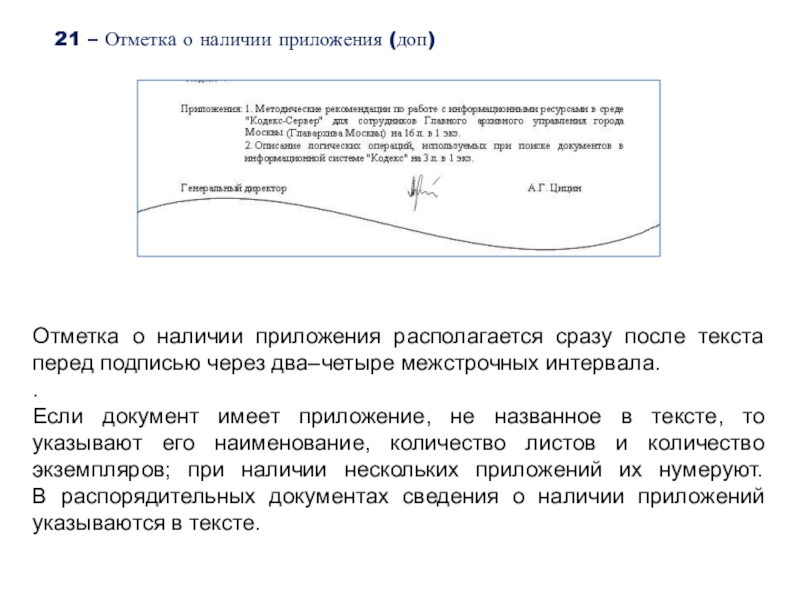 Слайд 4321 – Отметка о наличии приложения (доп)