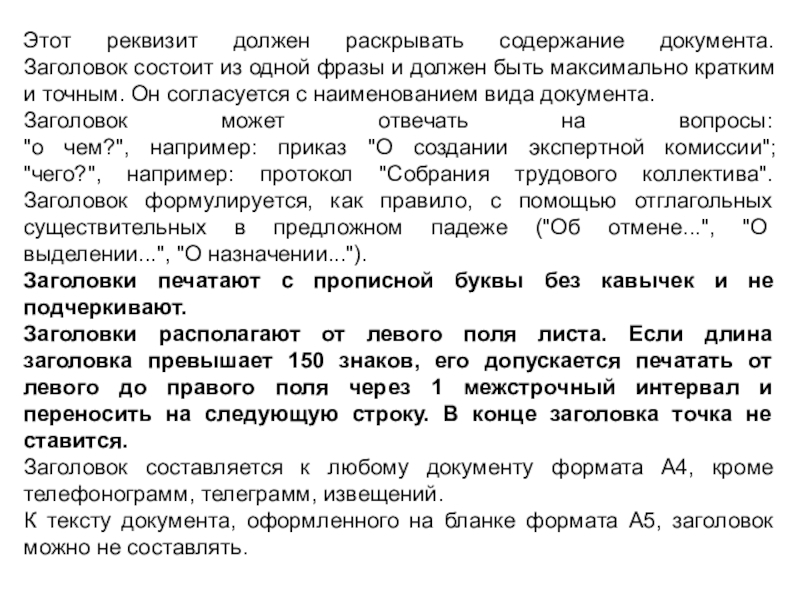 Слайд 40Этот реквизит должен раскрывать содержание документа.