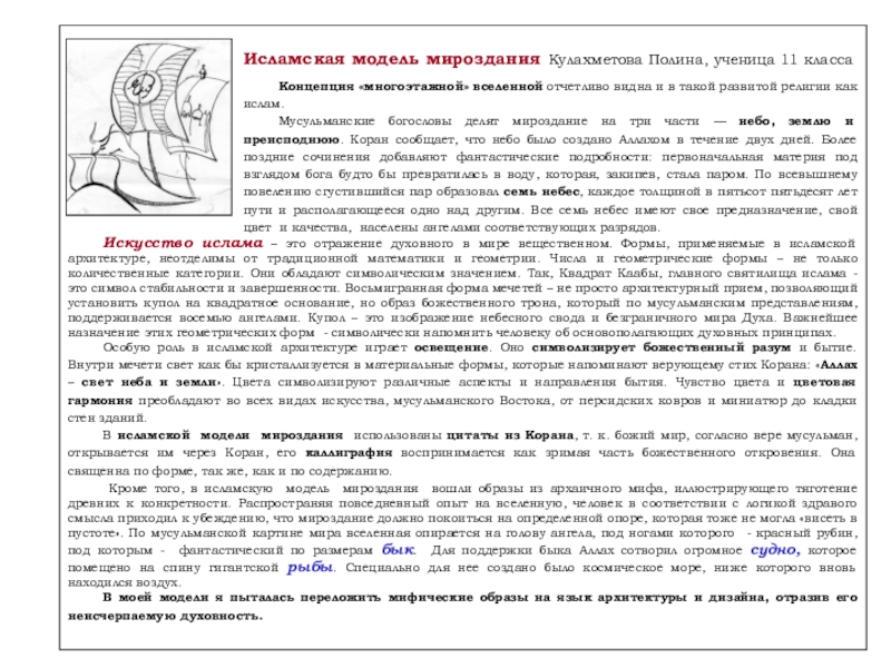 Слайд 30Исламская модель мироздания Кулахметова Полина, ученица 11 класса