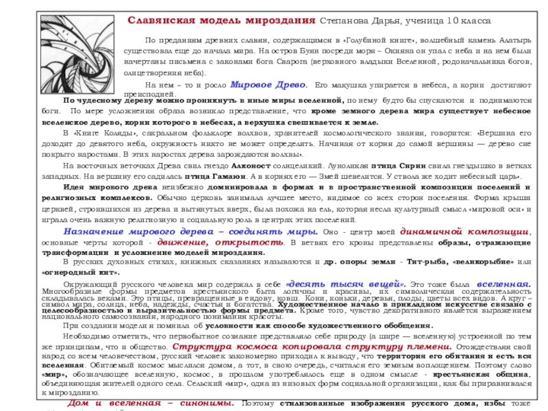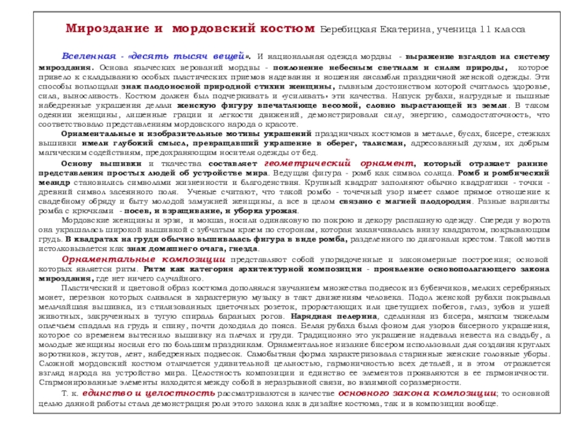 Слайд 22Мироздание и мордовский костюм Беребицкая Екатерина, ученица 11 класса
