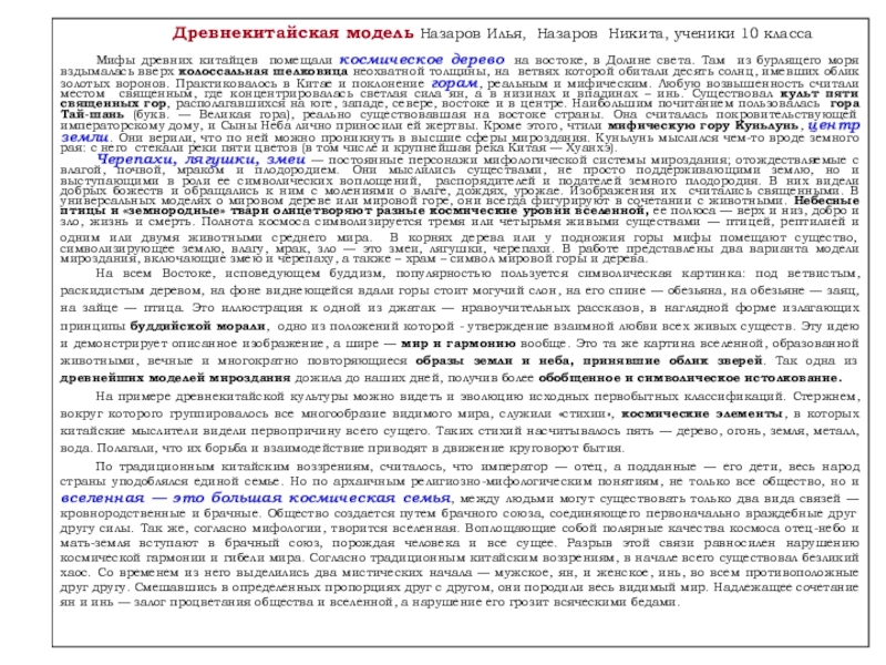 Наш проект – фантазии на темы мифов о мироздании, которые стали первыми донаучными попытками людей постичь устройство и закономерности происхождения и строения вселенной и окружающего их мира.