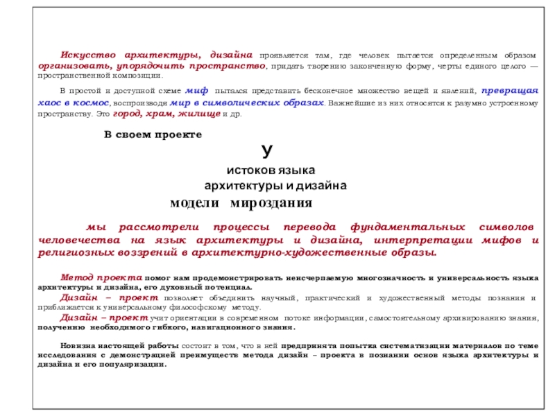 Дизайн – проект позволяет объединить научный, практический и художественный методы познания и приближается к универсальному философскому методу.