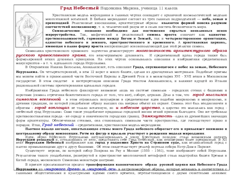 Слайд 32Град Небесный Подсекина Марина, ученица 11 класса