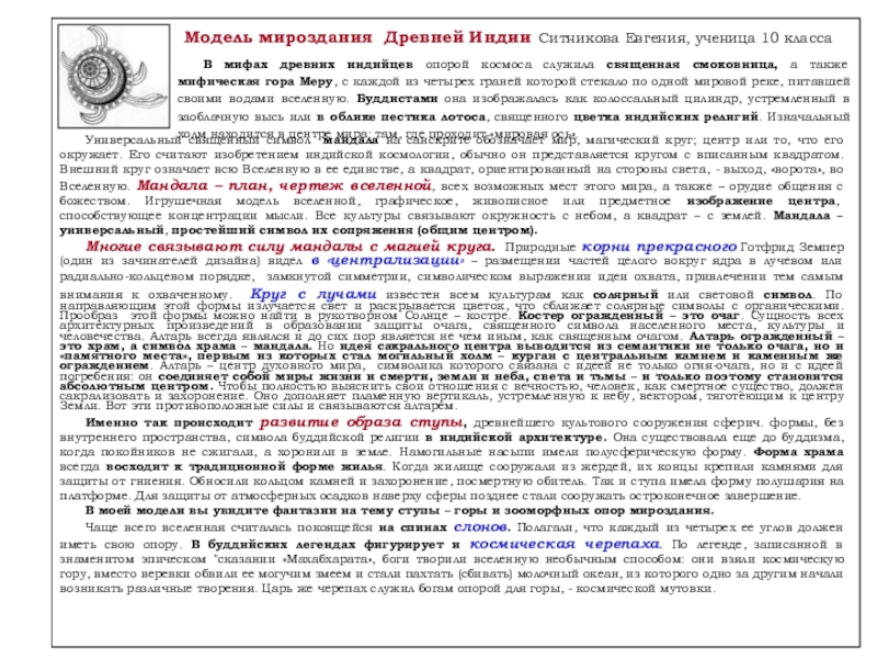 Слайд 10Модель мироздания Древней Индии Ситникова Евгения, ученица 10 класса