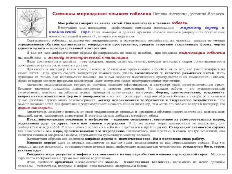 Слайд 6Символы мироздания языком гобелена Попова Антонина, ученица 8 класса