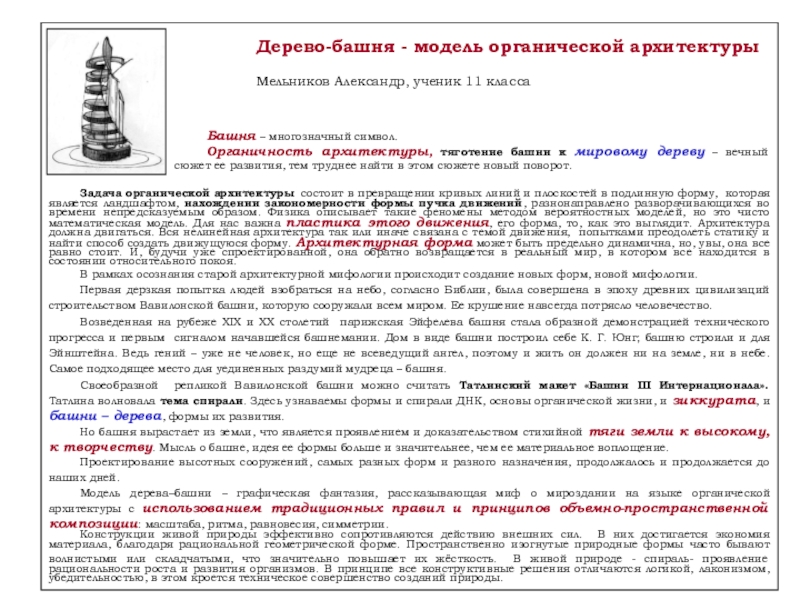 Слайд 29Дерево-башня - модель органической архитектуры