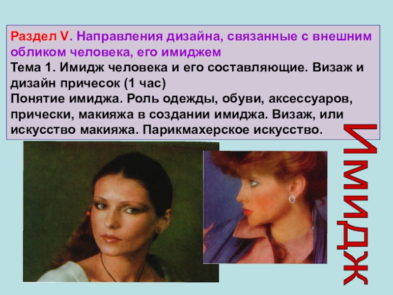 Слайд 45Раздел V. Направления дизайна, связанные с внешним обликом человека, его имиджем