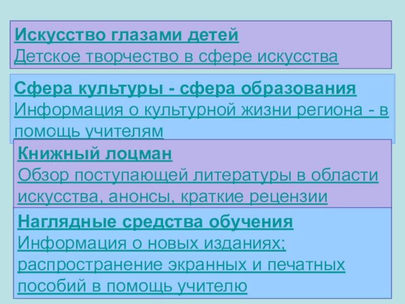 Информация о новых изданиях; распространение экранных и печатных пособий в помощь учителю