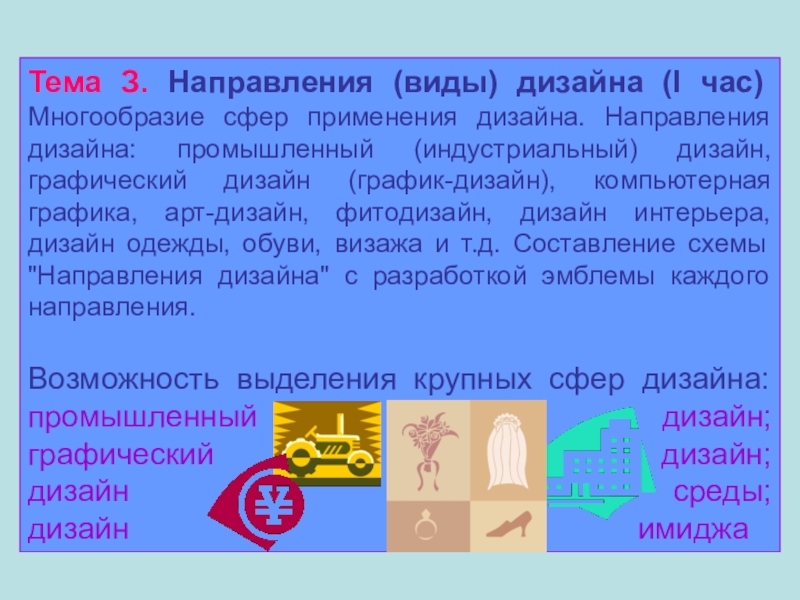 Слайд 15Тема З. Направления (виды) дизайна (I час)