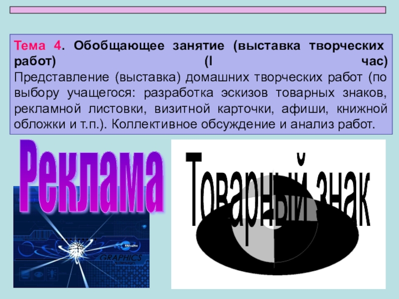 Слайд 22Тема 4. Обобщающее занятие (выставка творческих работ) (I час)