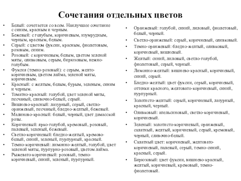 Темно-оранжевый: бледно-желтый, оливковый, коричневый, вишневый.