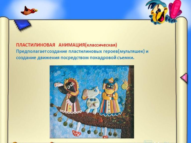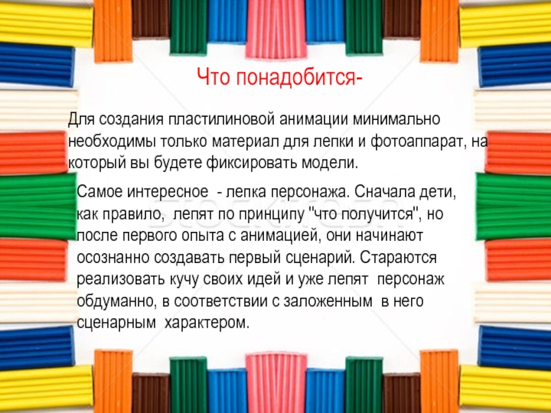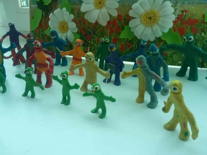 Самое интересное - лепка персонажа. Сначала дети, как правило, лепят по принципу "что получится", но после первого опыта с анимацией, они начинают осознанно создавать первый сценарий. Стараются реализовать кучу своих идей и уже лепят персонаж обдуманно, в соответствии с заложенным в него сценарным характером.