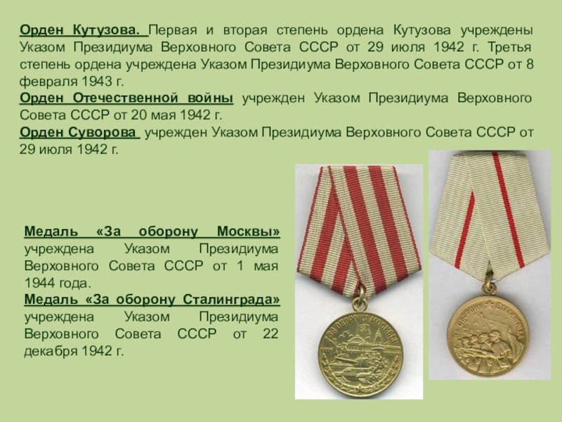 Медаль «За оборону Сталинграда» учреждена Указом Президиума Верховного Совета СССР от 22 декабря 1942 г.