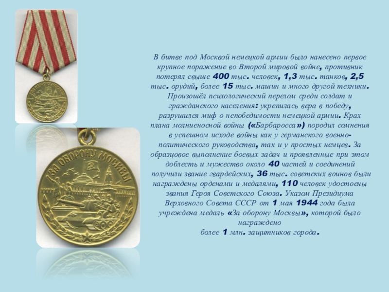 Слайд 7В битве под Москвой немецкой армии было нанесено первое крупное поражение
