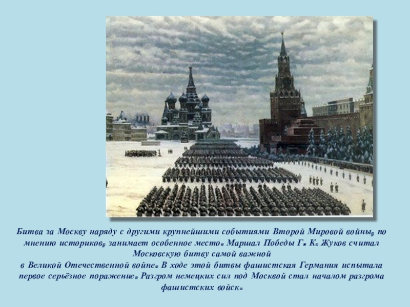 Слайд 4Битва за Москву наряду с другими крупнейшими событиями Второй Мировой войны,