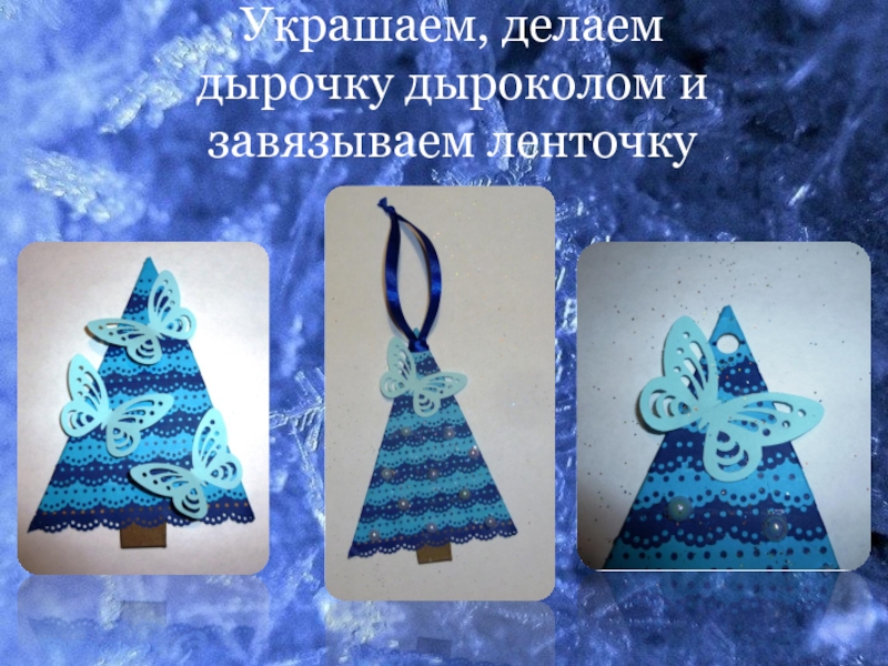 Слайд 6Украшаем, делаем дырочку дыроколом и завязываем ленточку