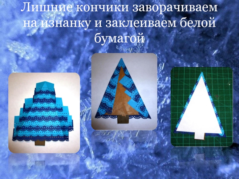 Слайд 5Лишние кончики заворачиваем на изнанку и заклеиваем белой бумагой