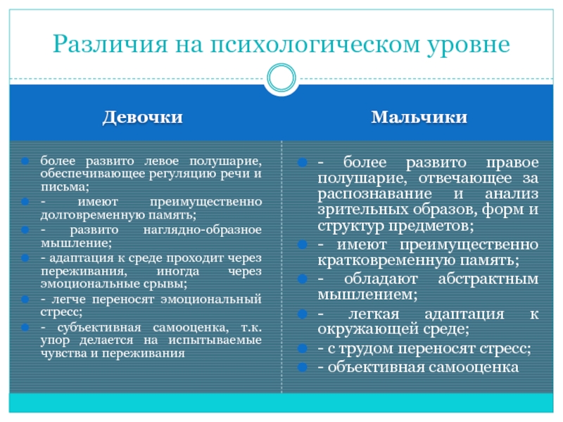 - более развито правое полушарие, отвечающее за распознавание и анализ зрительных образов, форм и структур предметов;