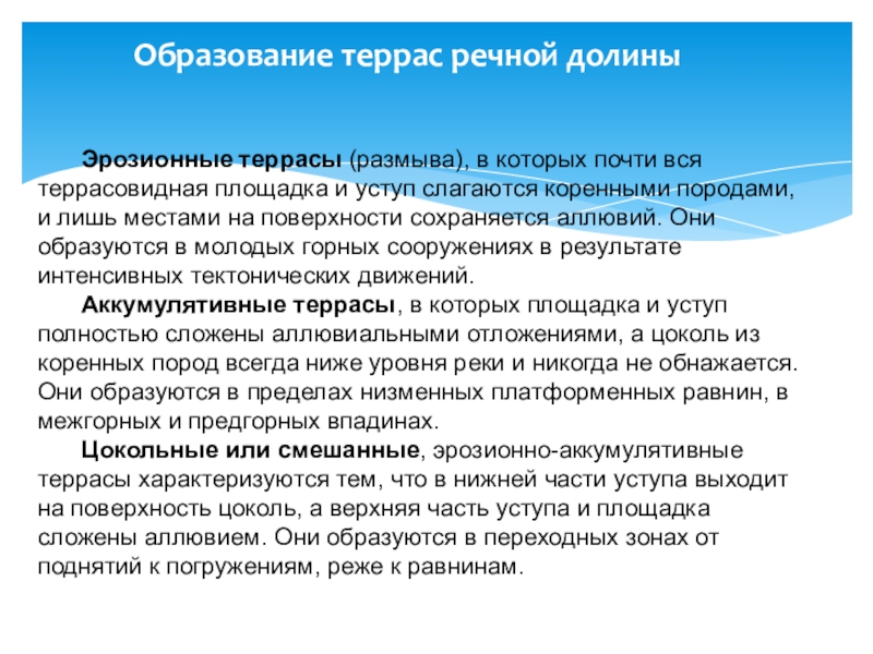 Речные долины. Элементы долины. Пойма и ее элементы. Образование и типы речных долин
