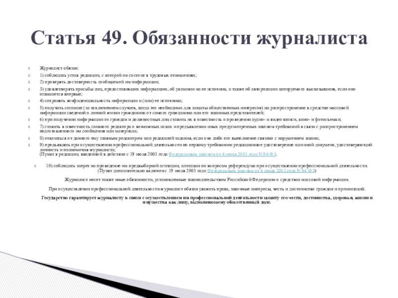 Статья 51. Недопустимость злоупотребления правами журналиста