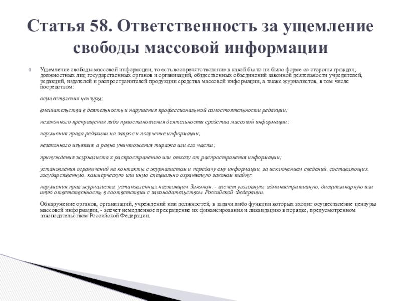 Статья 58. Ответственность за ущемление свободы массовой информации