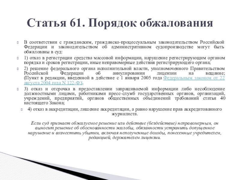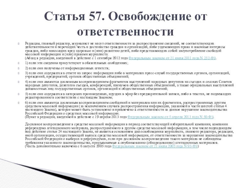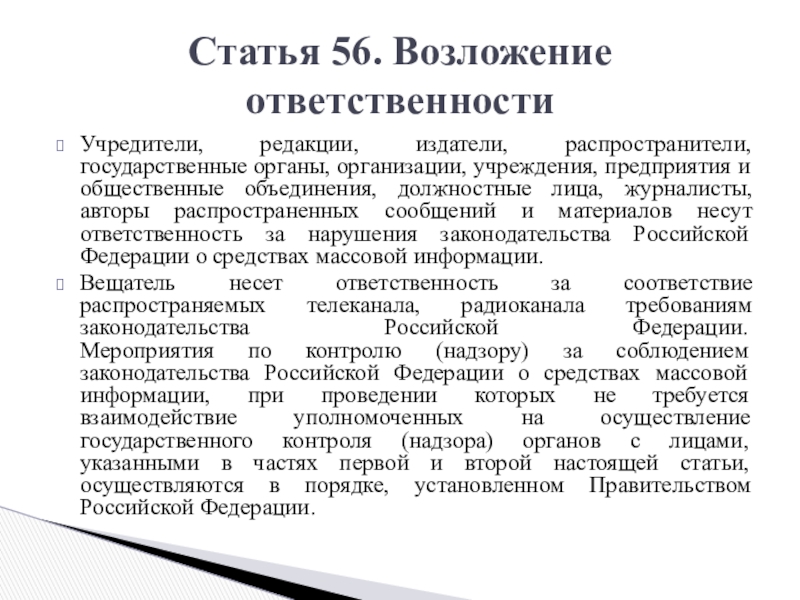 Статья 59. Ответственность за злоупотребление свободой массовой информации