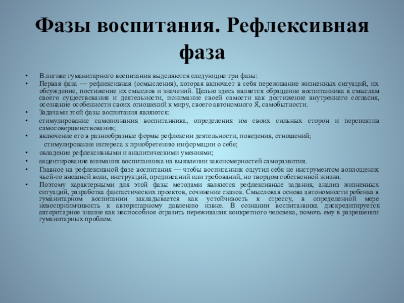 Слайд 9Фазы воспитания. Рефлексивная фаза