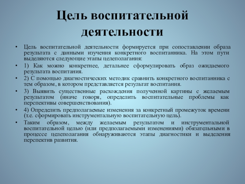 Цель воспитательной деятельности формируется при сопоставлении образа результата с