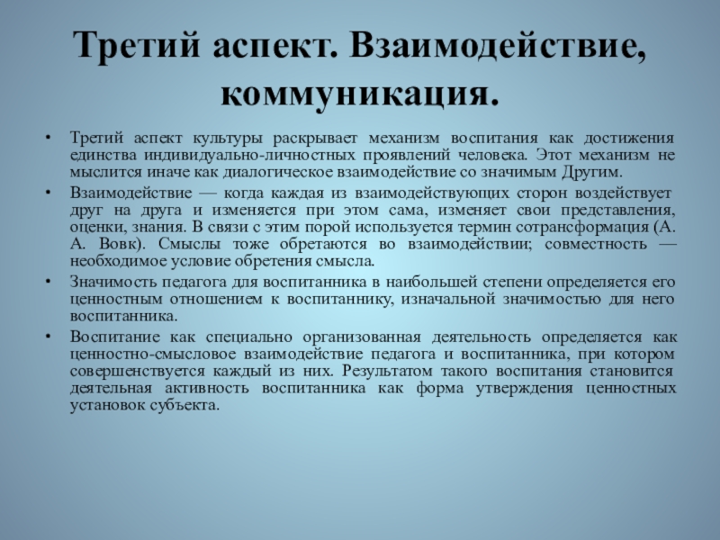 Слайд 5Третий аспект. Взаимодействие, коммуникация.