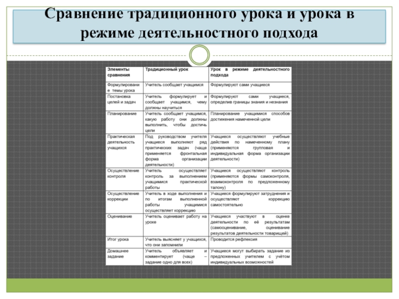 Слайд 9Сравнение традиционного урока и урока в режиме деятельностного подхода