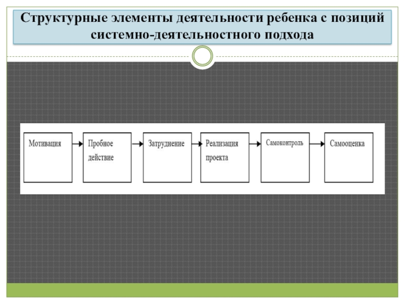 Слайд 7Структурные элементы деятельности ребенка с позиций системно-деятельностного подхода