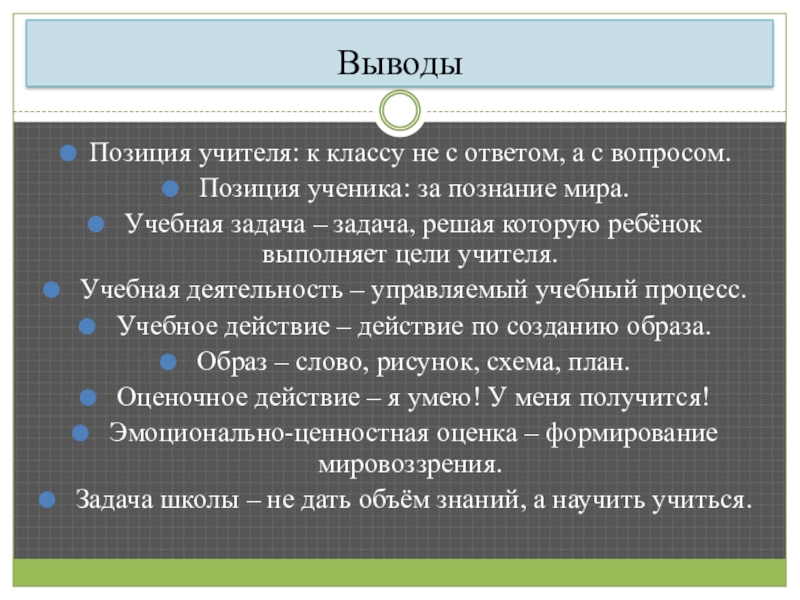 Учебная задача – задача, решая которую ребёнок выполняет цели учителя.