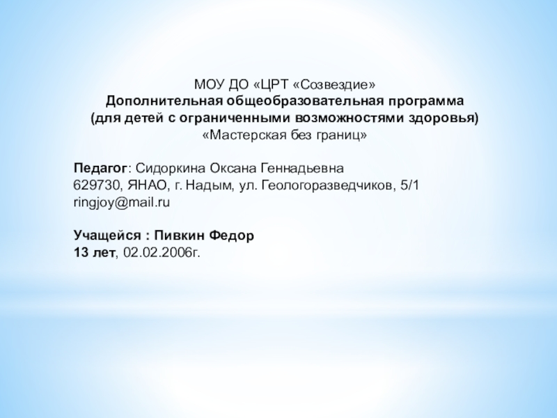 «Я люблю творить! Мне нравится создавать своими руками различные поделки. Я знакомлюсь с чем-то новым и стараюсь воплотить это в своей игрушке или модели. Я же в некотором смысле творец!»