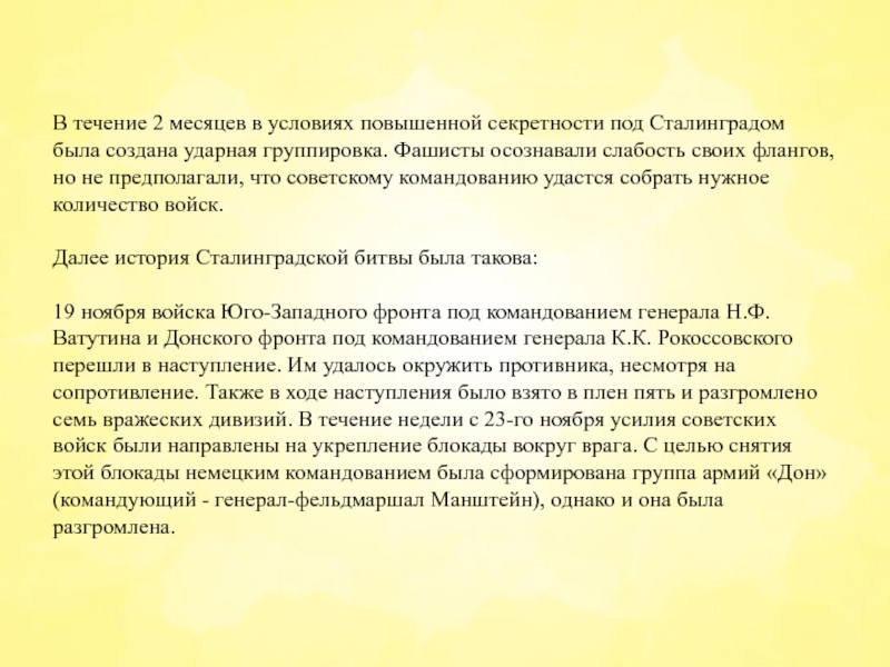 Слайд 6Уничтожение окруженной группировки вражеской армии было поручено войскам Донского фронта (командующий