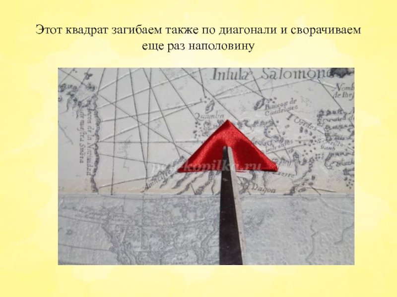Слайд 15Этот квадрат загибаем также по диагонали и сворачиваем еще раз наполовину