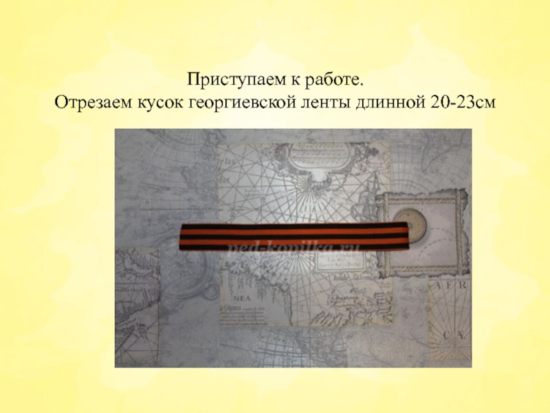 Отрезаем кусок георгиевской ленты длинной 20-23см