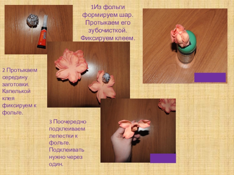 3 Поочередно подклеиваем лепестки к фольге. Подклеивать нужно через один.