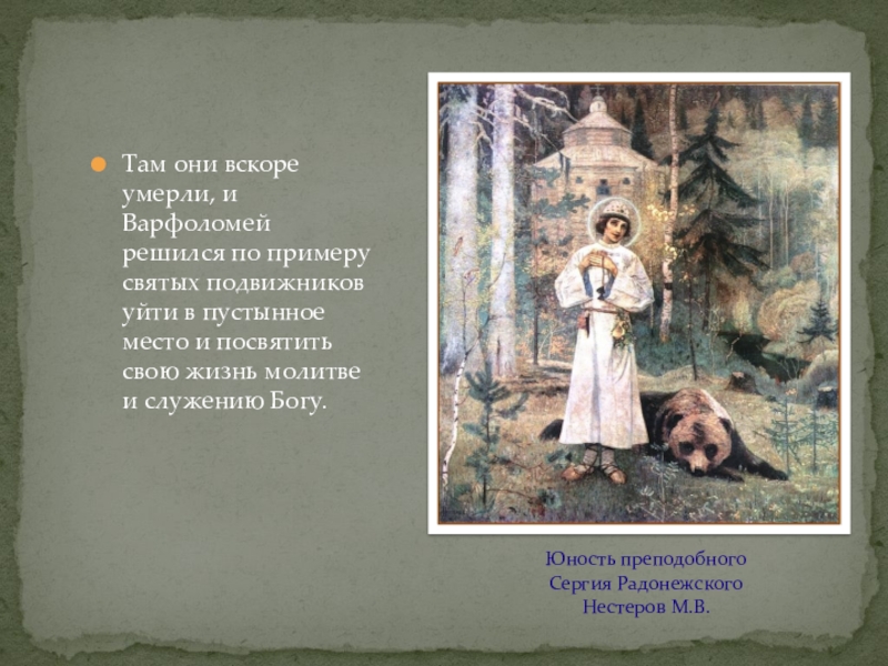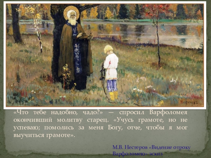 М.В. Нестеров «Видение отроку Варфоломею» эскиз