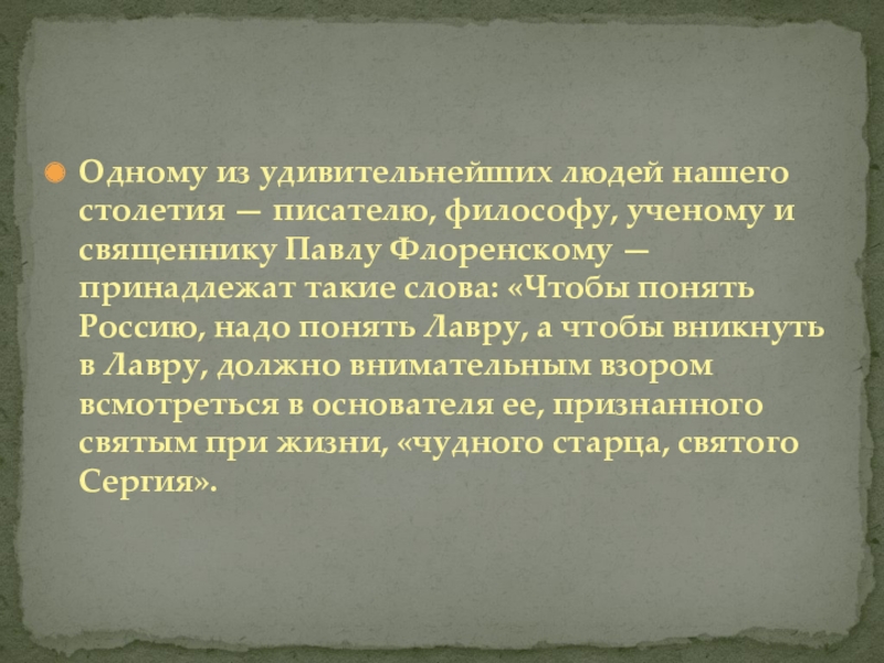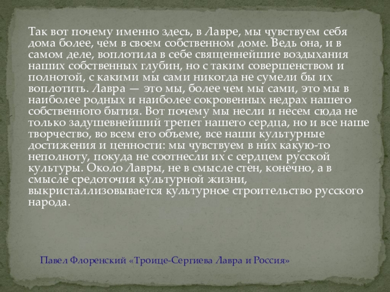 Павел Флоренский «Троице-Сергиева Лавра и Россия»