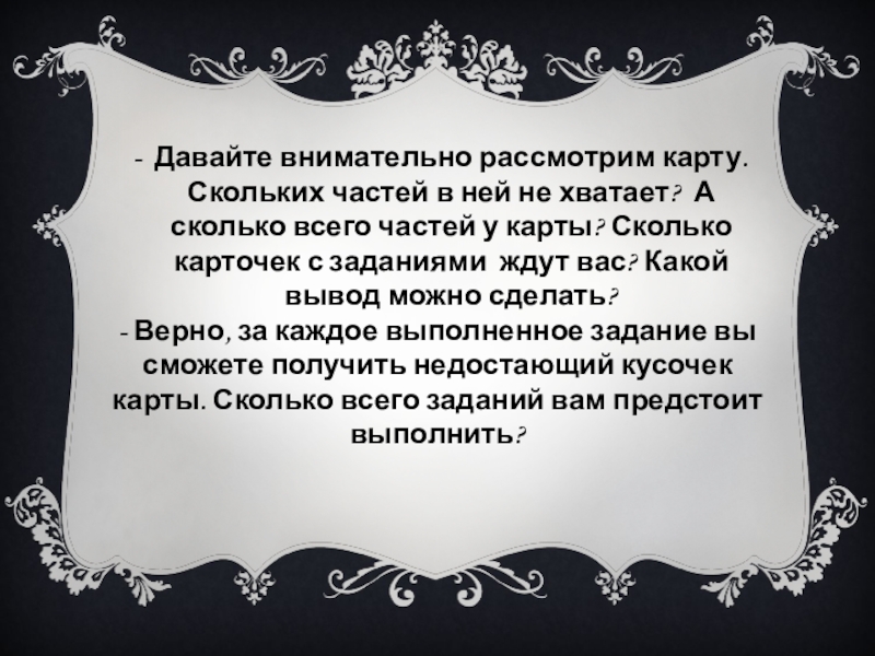 сколько всего частей у карты? Сколько карточек с заданиями ждут вас? Какой вывод можно сделать?