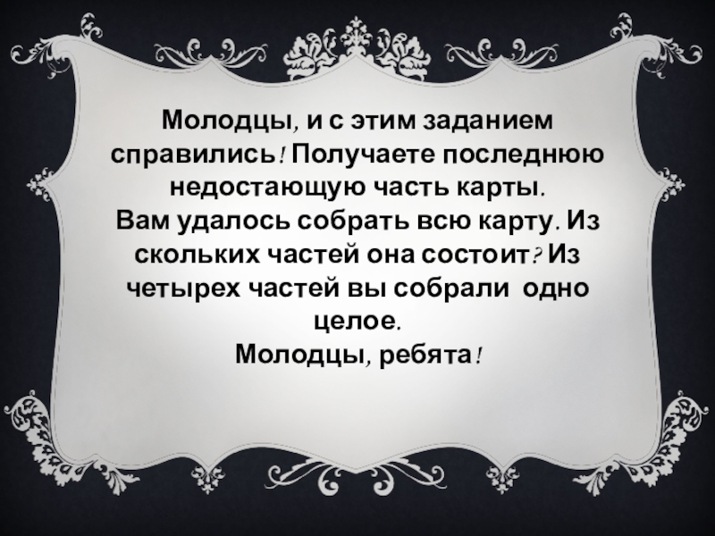 Слайд 10Молодцы, справились и с этим заданием, получаете вторую часть карты!