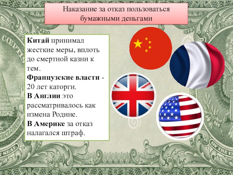 Слайд 20Наказание за отказ пользоваться бумажными деньгами