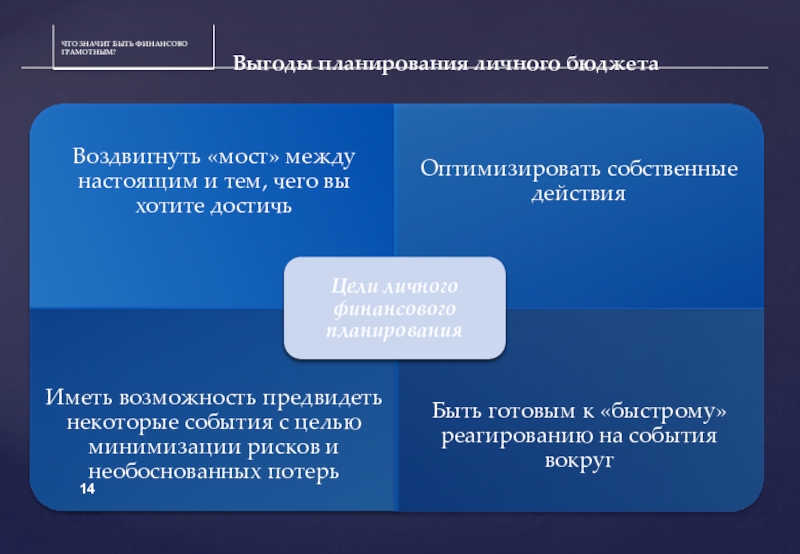 Слайд 14Выгоды планирования личного бюджета