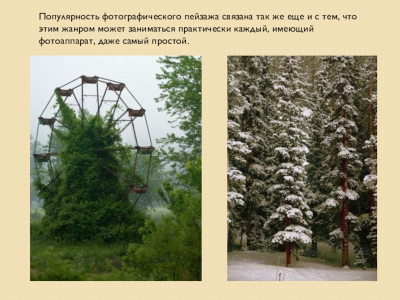 Слайд 9Популярность фотографического пейзажа связана так же еще и с тем, что