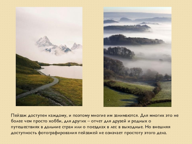 Слайд 10Пейзаж доступен каждому, и поэтому многие им занимаются. Для многих это
