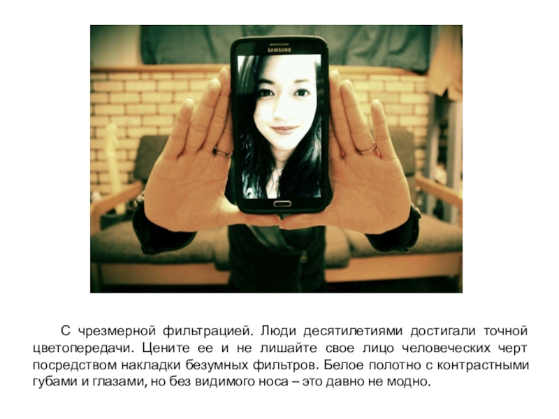 Слайд 22 С чрезмерной фильтрацией. Люди десятилетиями достигали точной цветопередачи. Цените ее и