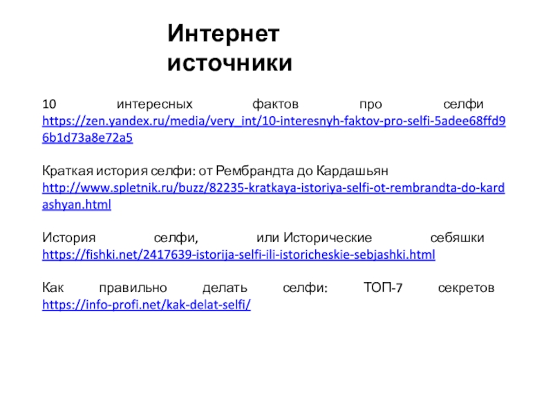 Слайд 2410 интересных фактов про селфи https://zen.yandex.ru/media/very_int/10-interesnyh-faktov-pro-selfi-5adee68ffd96b1d73a8e72a5