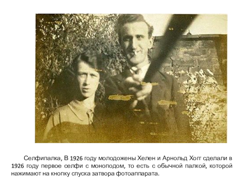 Слайд 6 Селфипалка, В 1926 году молодожены Хелен и Арнольд Хогг сделали в